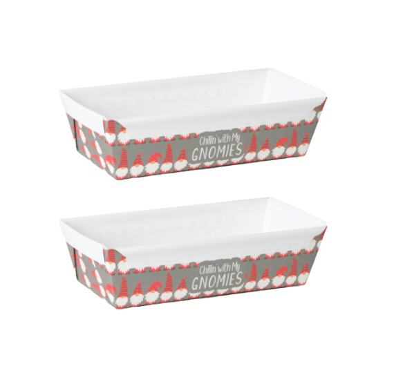 These small Gnome loaf pans are perfect for making holiday quick breads, cakes or even to use to pack up cookies for gift giving. These festive holiday paper loaf pans are free standing; you simply place on a baking sheet to bake! See all of the loaf pans we carry here.