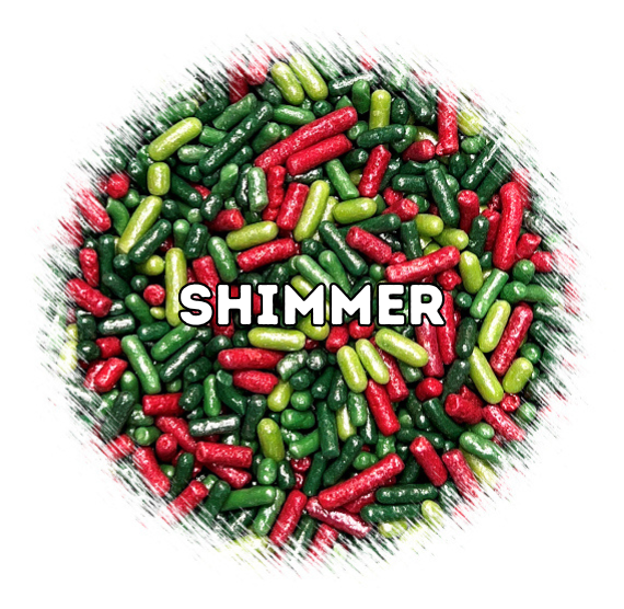 Shop our bulk Christmas Jimmies Mix in our Holly Berry colors of shades of green and red sprinkles that have a pretty shimmer. Use these festive holiday sprinkles for decorating cakes, cupcakes, cookies, chocolate dipped pretzels and more! Our bulk Christmas sprinkles are great for those needing a large amount of sprinkles! Jimmies are a softer sugar strand style sprinkle. If you need a smaller amount click here or shop by sprinkle style off the sprinkle tab on our menu bar.