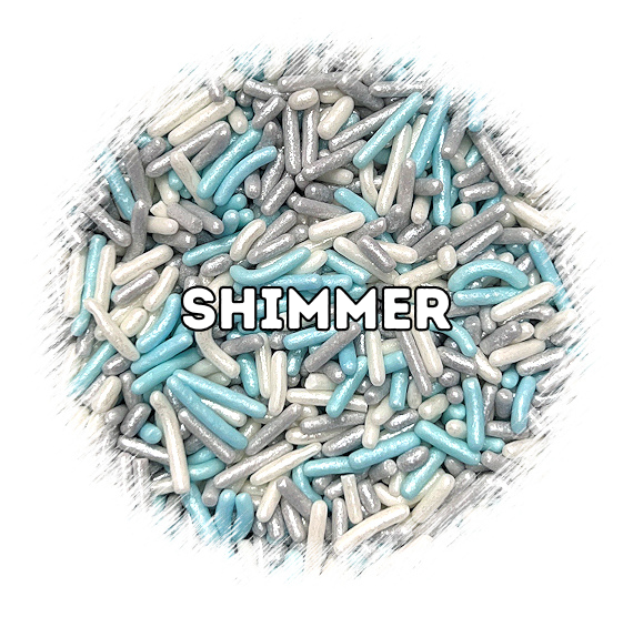 Shop our bulk jimmies sprinkles in our Jack Frost mix in shimmer light blue, silver and white. Use these holiday sprinkles for topping winter ice cream, decorating cakes, cupcakes, cookies, chocolate dipped pretzels and more! Our bulk sprinkles are great for those needing a large amount of sprinkles! Jimmies are a softer sugar strand style sprinkle. If you need a smaller amount, click here or shop by sprinkle style off the sprinkle tab on our menu bar.