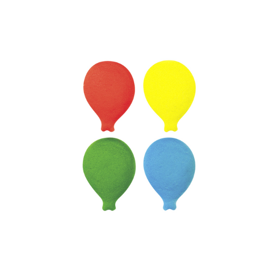 Shop these balloons sugar toppers assortment in a mix of red, yellow, green and blue. These edible cupcake toppers in the shape of a balloon are perfect for decorating cakes, cupcakes or cookies. Sugar Dec-Ons® are made of fine granulated sugar molded into various shapes, then hand painted with edible inks. These even work for frozen desserts and ice cream cakes and will withstand freezing/defrosting! See all of the sugar toppers we carry in full sets here
