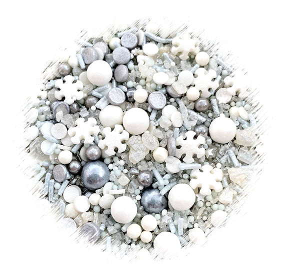 Our Sprinklefetti™ Christmas Sprinkle Mix in silver and white with snowflakes is full of a variety of pretty sprinkles including jimmies, nonpareils, sugars, large and small sugar pearls, snowflake quins and edible glitter. This elegant Christmas sprinkle blend is perfect for the holiday season right through winter! Use this mix to decorate cupcakes, cakes, cookies, cake pops and more! See all of the Sprinklefetti™ mixes we carry here.